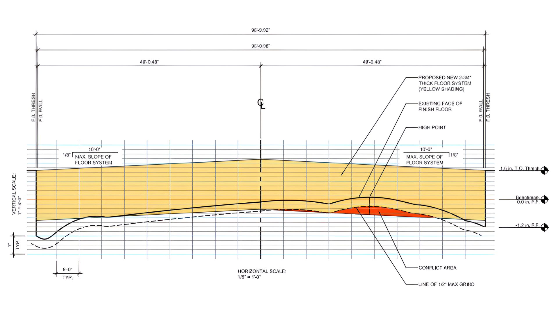 Due to the complexity of the curved walls, this owner was considering using the record drawings to have stone tile flooring laser cut and shipped from Italy for installation. Had they done that without first verifying the existing conditions through an existing conditions survey, much of the tile would have had to be re-cut—costing thousands of dollars and weeks of lost time.